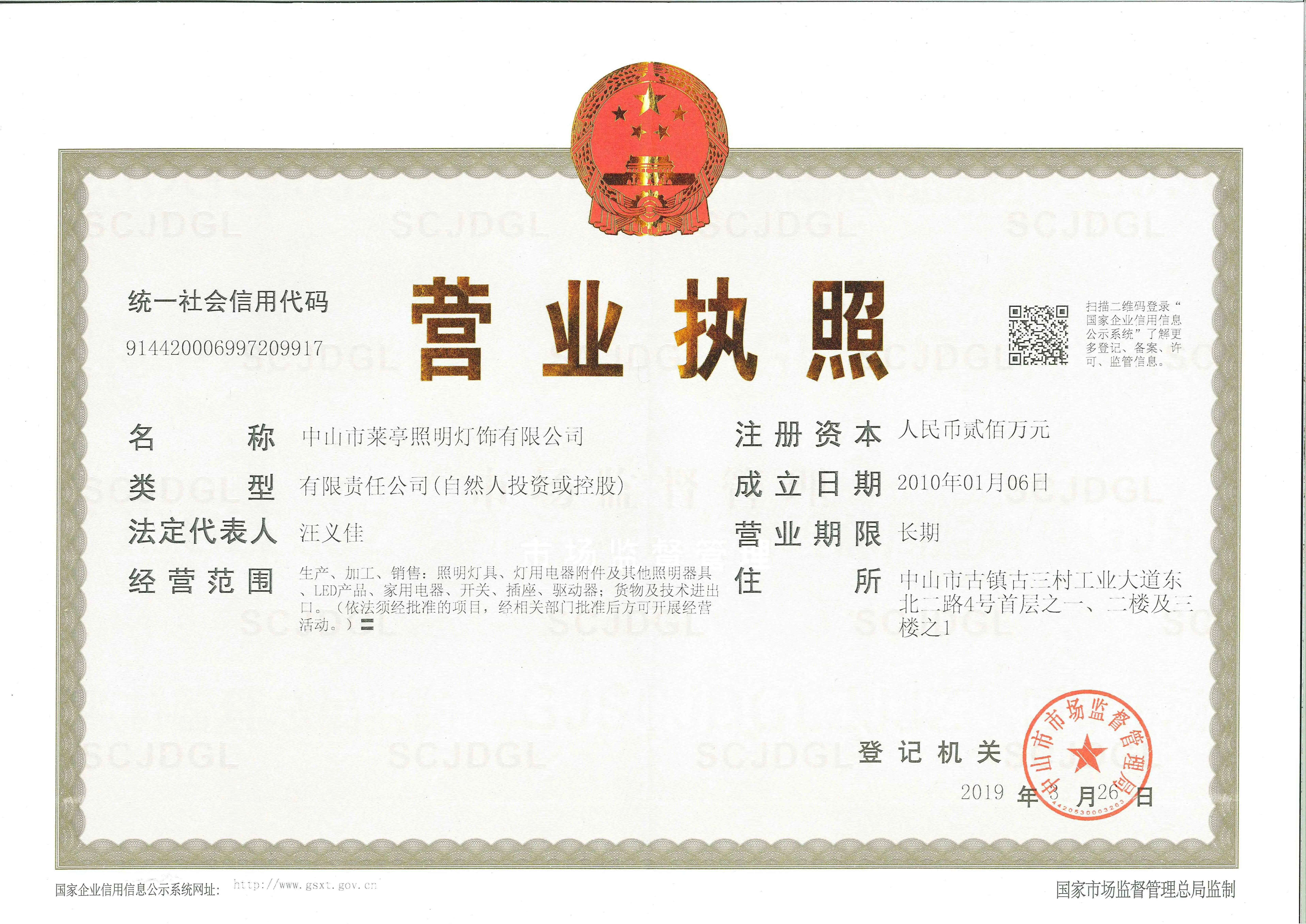 Company Name : Zhongshan Laiting Lighting Co., Ltd.
